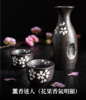 薰酒=口感清爽、香氣奔放,爽酒=口感清爽、香氣內斂,醇酒=口感厚重、香氣內斂,熟酒=口感厚重、香氣奔放。